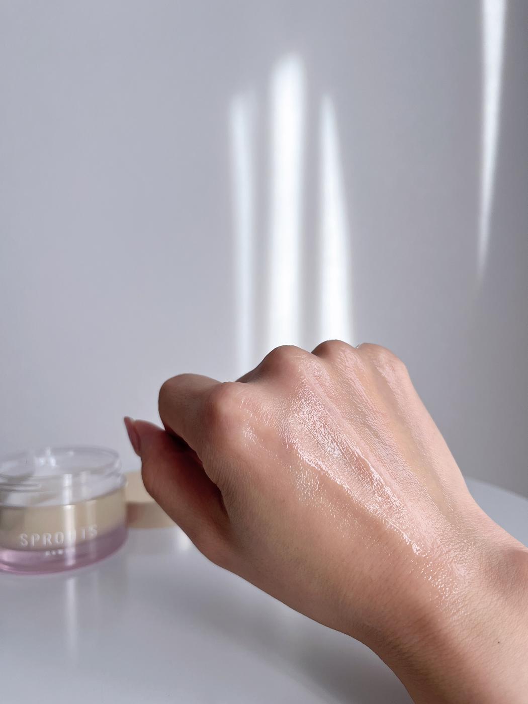 ヒト幹細胞高配合美容液SPROUTSを使ってみました! ゴールドの蓋のジャータイプの容器に入っている美容...