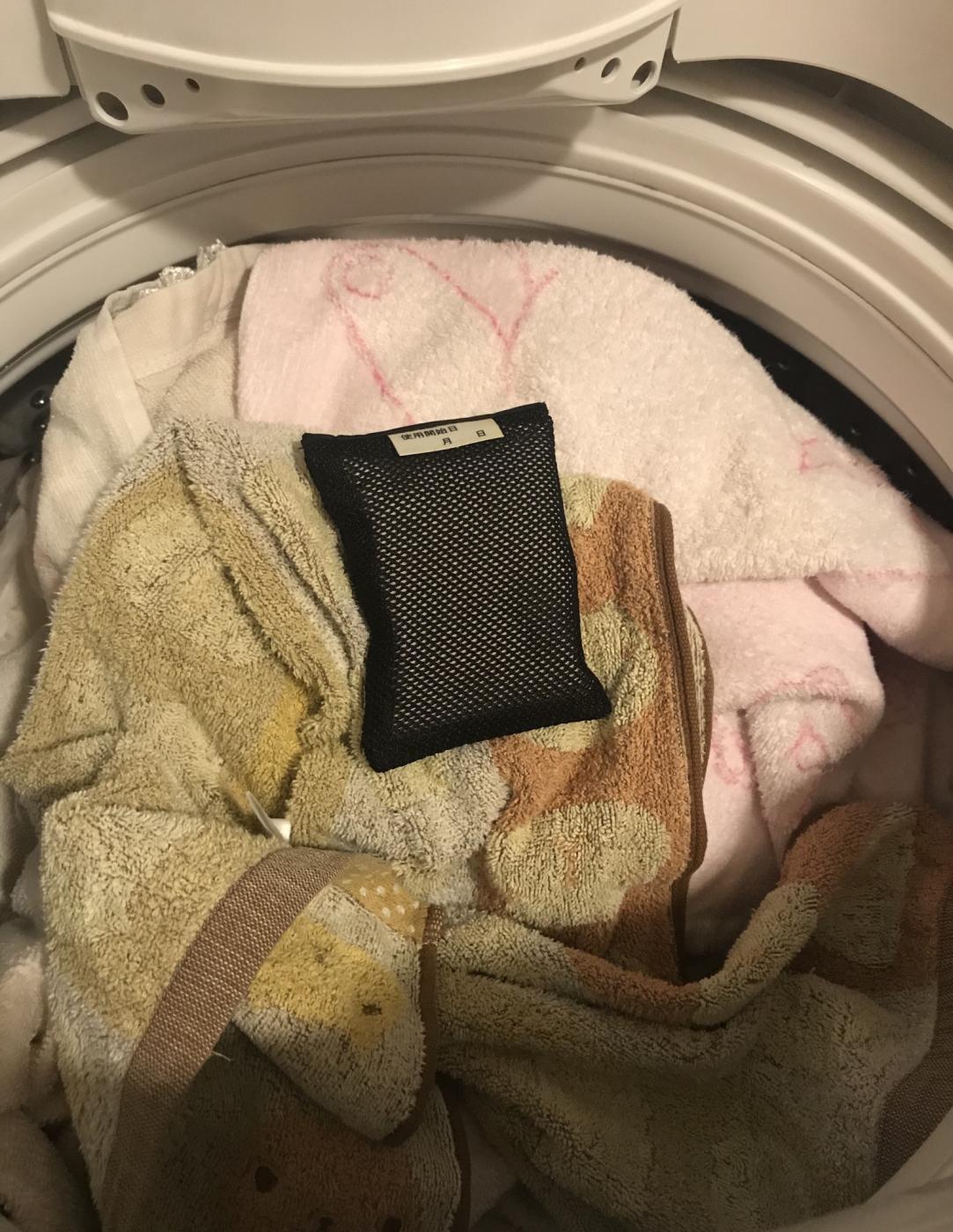 洗濯ものの上に乗せるのが良いようなので、1番上に乗せてから洗濯機をスタート!