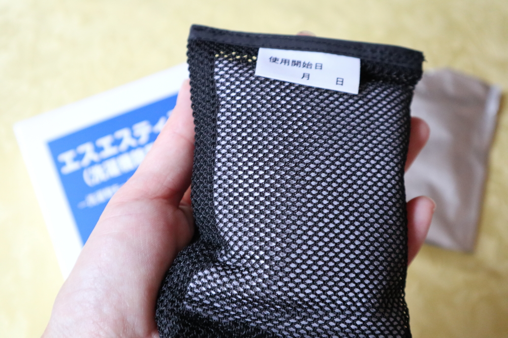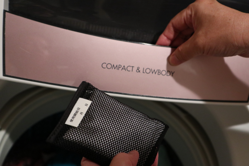 メッシュに入った黒い袋を洗濯機に入れて普段通りにお洗濯をするだけ。