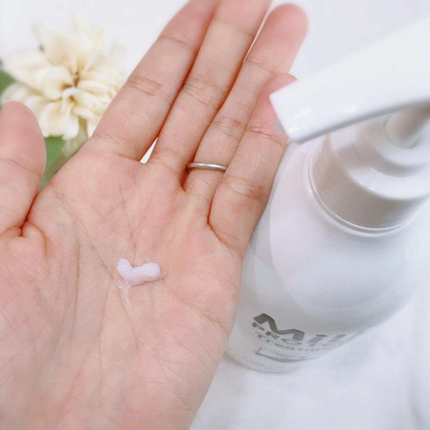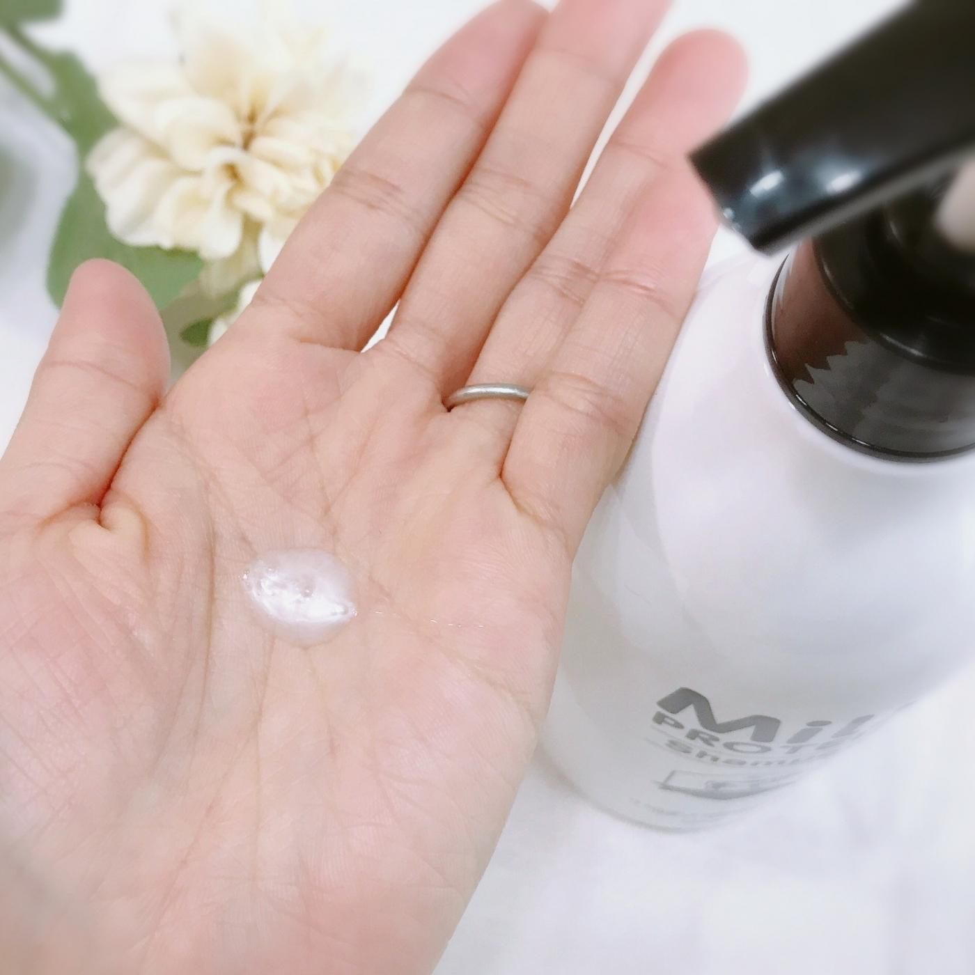 シャンプーはパールがかった綺麗な乳白色の緩めのテクスチャです。泡立ちが良くフローラルノートの甘い香りにとっても癒されます。良質なミルクプロテインが傷んだ髪を修復し、とぅるんとした手触りに導いてくれます。正直、素朴なパッケージからは想像つかないくらい、髪の毛の手触りやツヤが良くなってビックリしました。