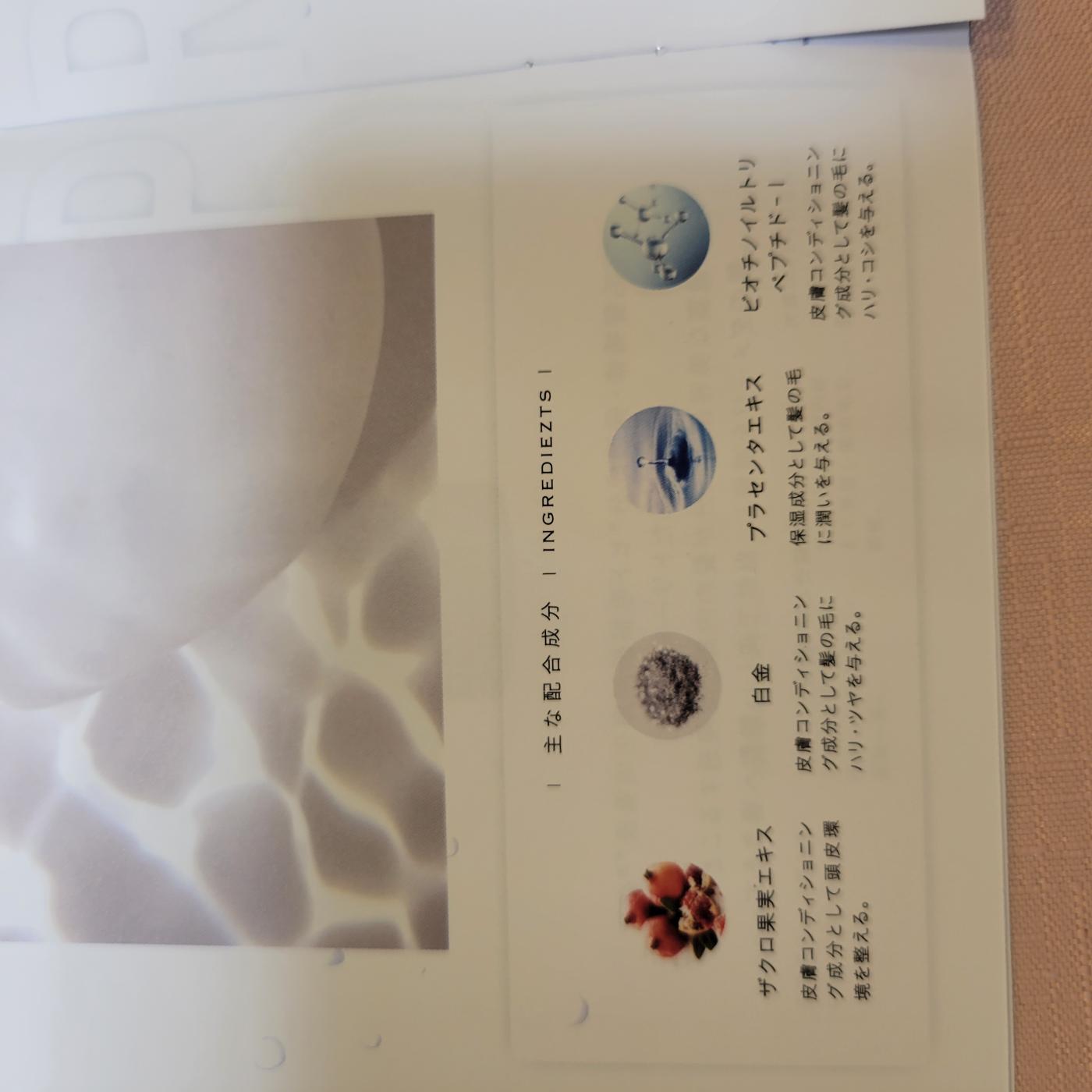 ザクロ果実エキスは、頭皮循環を整えてくれます。白金は、髪の毛にツヤ、ハリを与えてくれます。プラセンタエキスは、保湿成分として、髪の毛に潤いを与えてくれます。