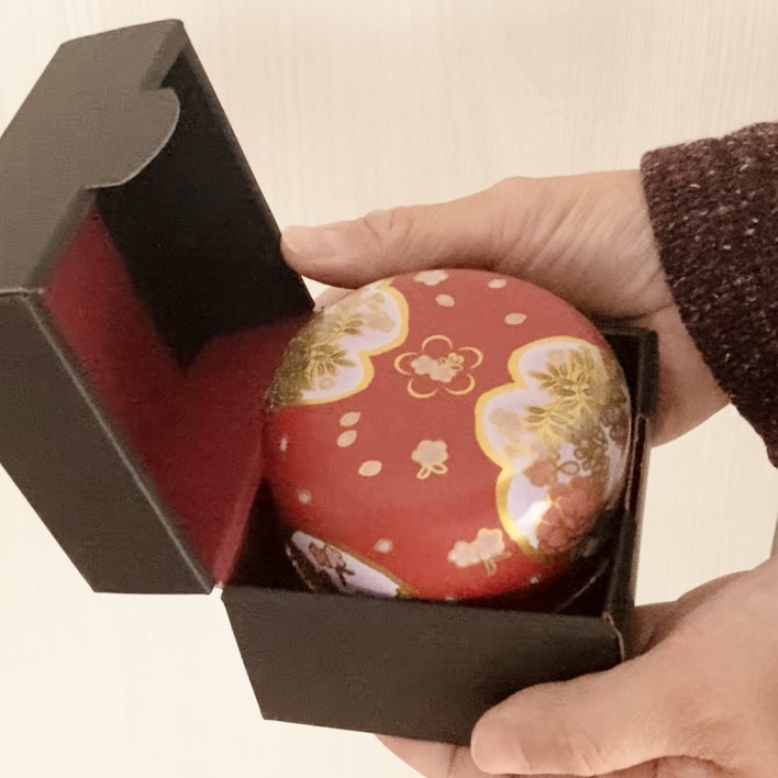 今回は華やかに春の花があしらわれたゴージャスな赤色のなつめ缶が入っていて、お気に入りになりました💕
