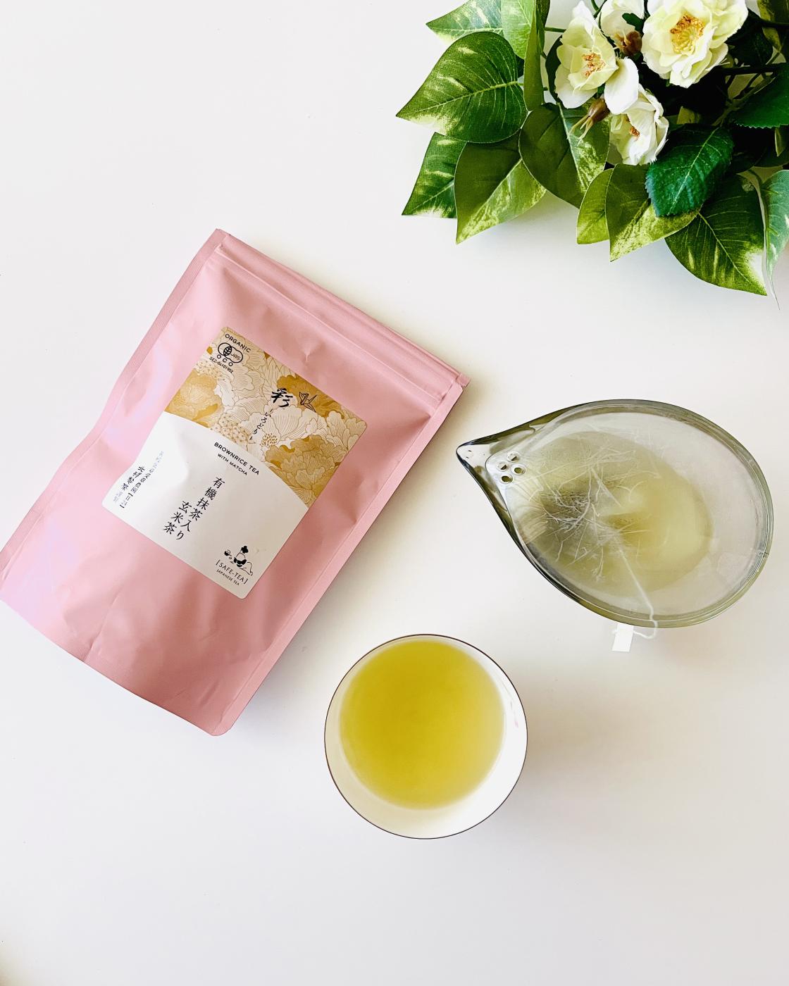 有機栽培の国産玄米に、有機緑茶と有機抹茶『おくみどり』をブレンドしたやさしい味わいの抹茶入り玄米茶です。