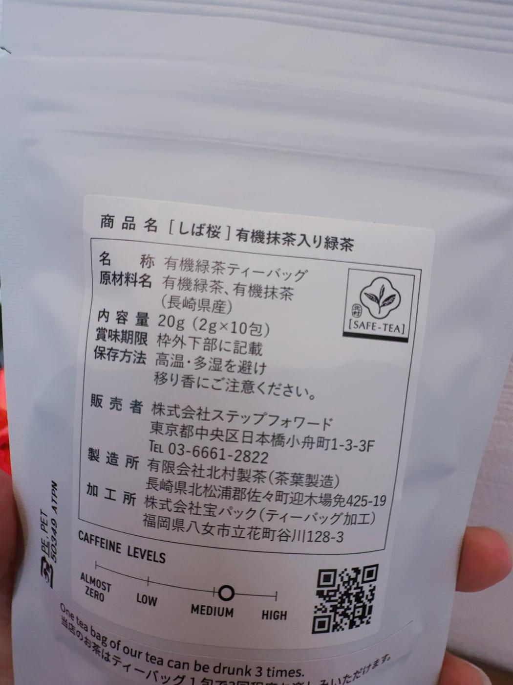 SAFE-TEA(セーフティー) しば桜(有機抹茶入り緑茶)パウチ袋入りをお試ししました。