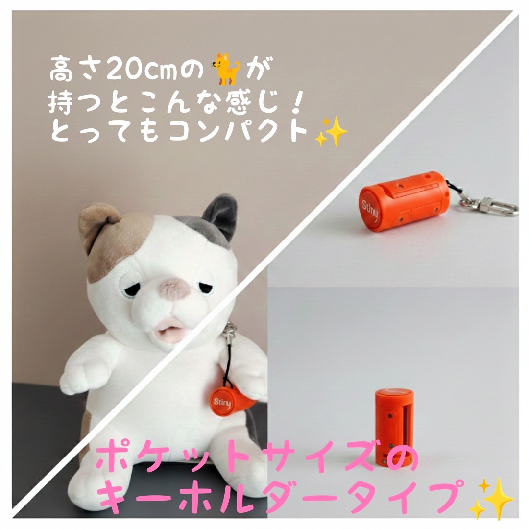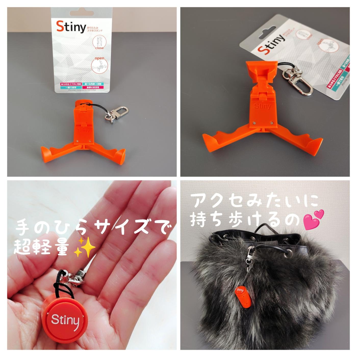 『Stiny』は、直径20mm×長さ約41mm、重さわずか約15g(キーホルダー含む)、とってもコンパクトで軽量のスマホスタンド。