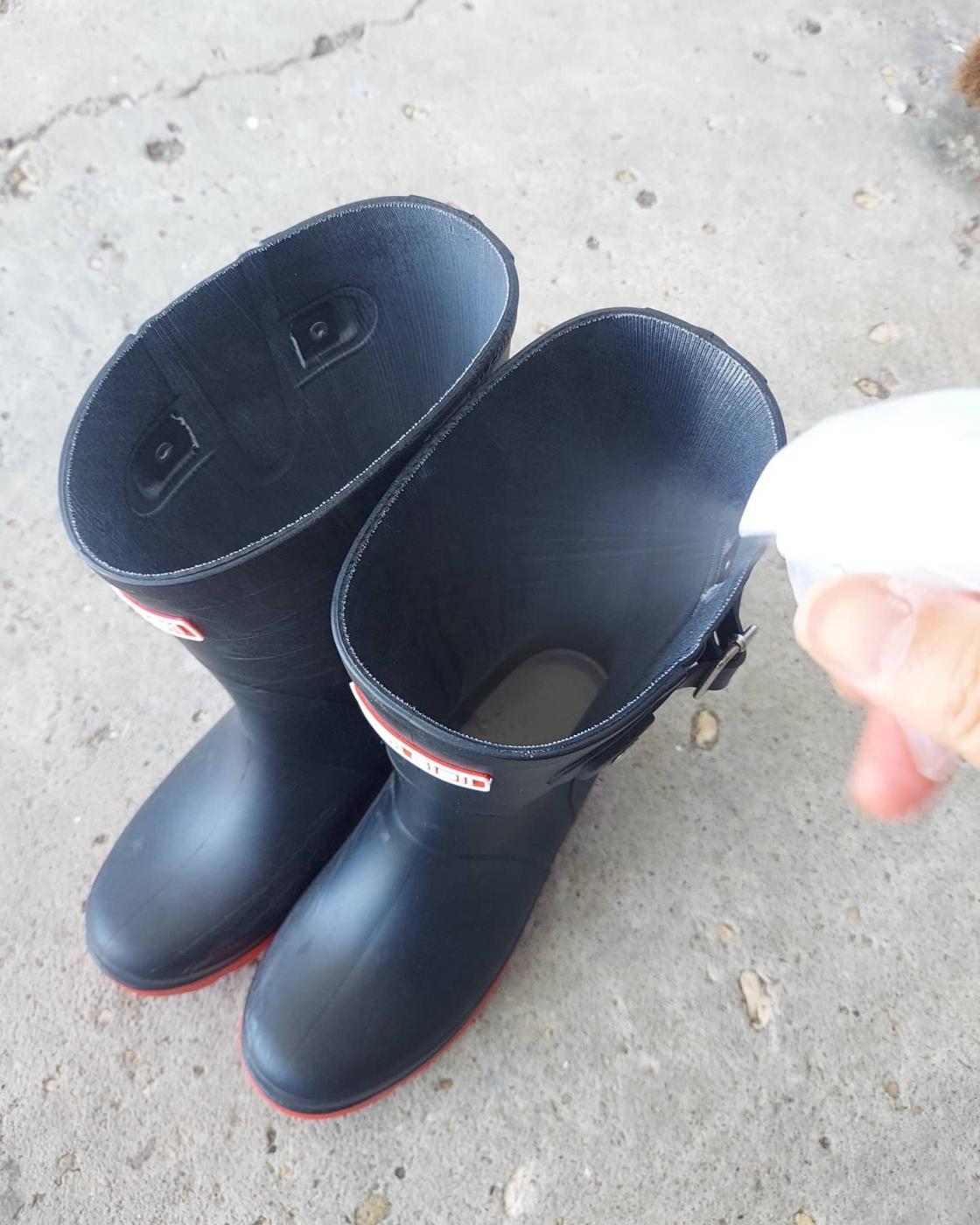 そこで、酵素パウダーを水で溶かし、30分放置しておいた液を、長靴にスプレーしました。