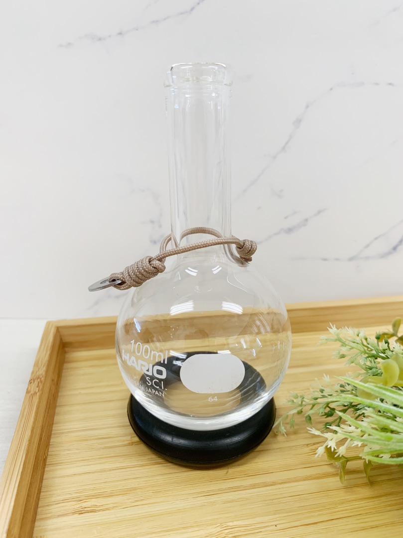 ゴムのスタンドもシンプルで、フラスコをしっかり支えてくれます。