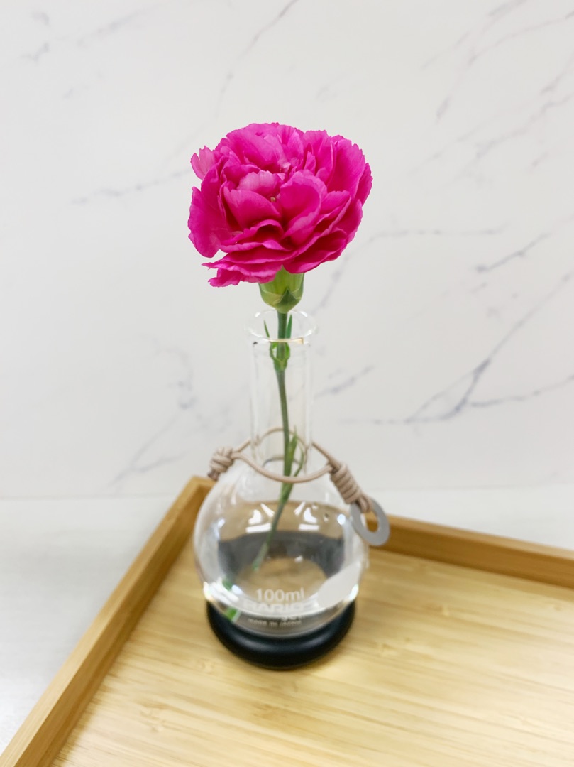 でもこのフラスコフラワーベースは水の劣化もしづいので、枯れにくくて長持ちするのも嬉しいです。
