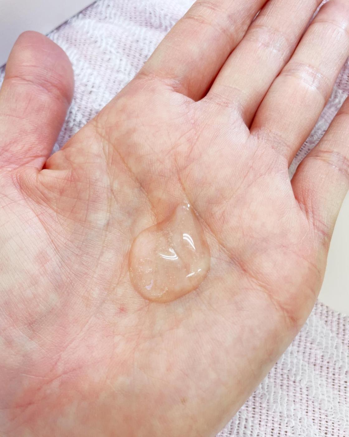 うるおいを守りながら、角栓まで除去するクレンジングジェルです。アミノ酸濃度が通常の約5倍という、日本酒を原材料にした「雪蔵濃縮アミノ酸」が配合されています。その抽出技術は世界唯一のものとして、国際特許申請中なのだそう。テクスチャーは柔らかめの透明ジェルです。ほどよい粘性と弾力があり、マッサージがしやすいです。このジェルが角質層の奥まで浸透して、肌を守りながら皮脂や角栓をオフしてくれるのです。使用量は、乾いた手に3〜4プッシュが目安。顔全体を5分ほどマッサージしていると、角栓が取れてきます。深層まで働きかけてしっかりオフするのが、通常のピーリングとは違うところですね。すすいだ後はとても爽快な気分。ツルツルとなめらかな肌になり、ゴワつきがまったく感じられません。毛穴がきれいだと肌触りも良くなるので、ついつい触ってしまいますね。使い続けることで、美白・整肌・抗酸化・むくみ解消・ニキビ軽減など嬉しい効果が期待できるようです。週2〜3回のスペシャルケアですので、無理なく継続できそうです。