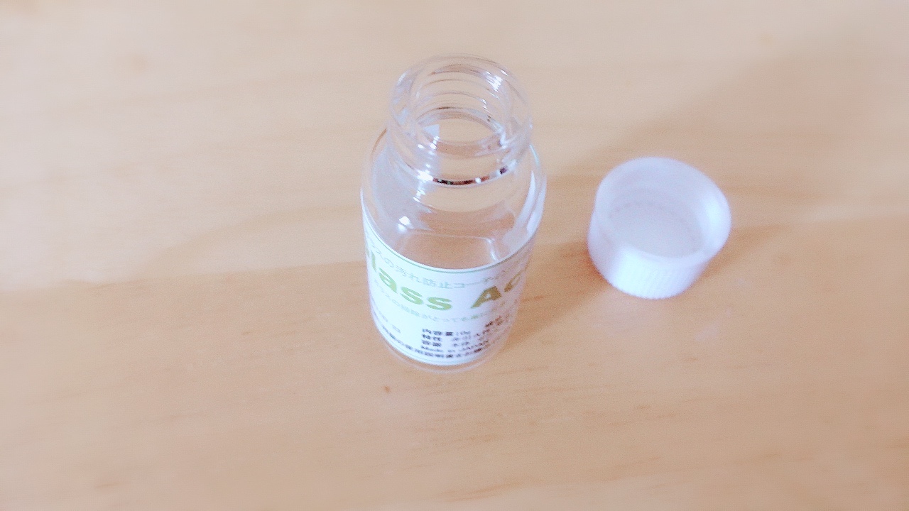 Glass Aceの液をティッシュペーパーに染み込ませて薄く塗り広げます。
