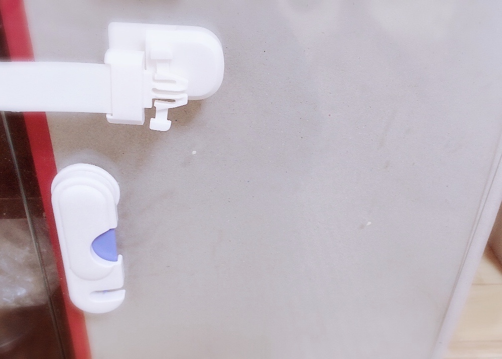 子供の手垢がビッシリついたテレビ台のガラス扉。
