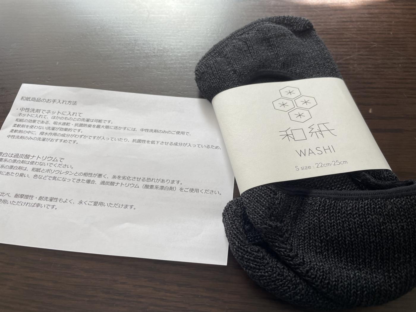 呼吸する和紙靴下、というネーミングがとても心に残ります。5本指の靴下で、名前の通り和紙でできていて...