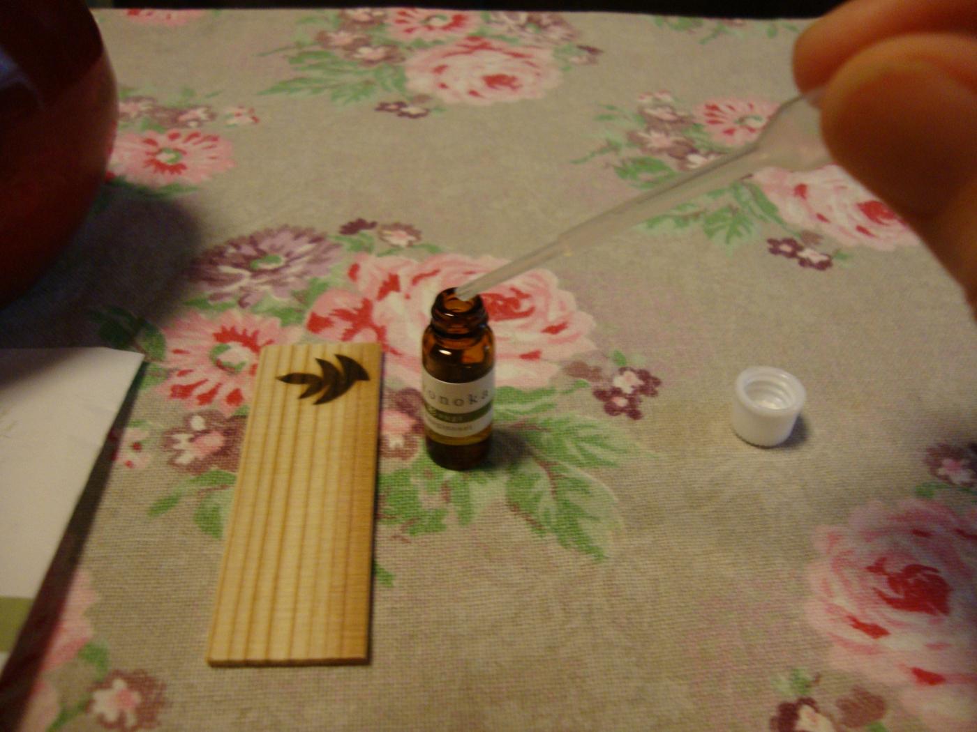 早速、試させていただきました。ボトルのふたを開けただけで、とてもいい香りです。付属の板に、スポイトで、数滴垂らします。部屋の中に、森林の中にいるような、爽やかな香りが広がります。まさに、森林浴気分です。