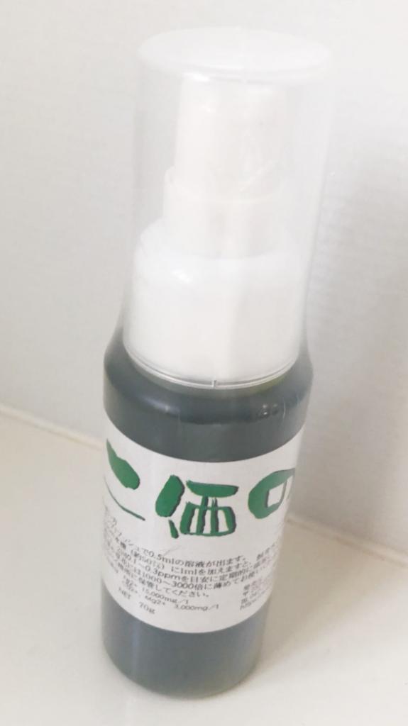 薄いグリーン色をした溶液で、水槽のお水にプッシュして、入れるだけなので、手軽です。