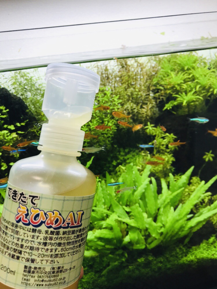この、できたてえひめAIを入れることで水槽内にいている見えない微生物達が元気になって、水質改善にいいみたい!