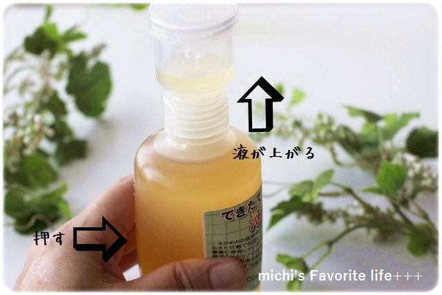 ボトルをプッシュすると、上の計量キャップに液が入る仕組み。