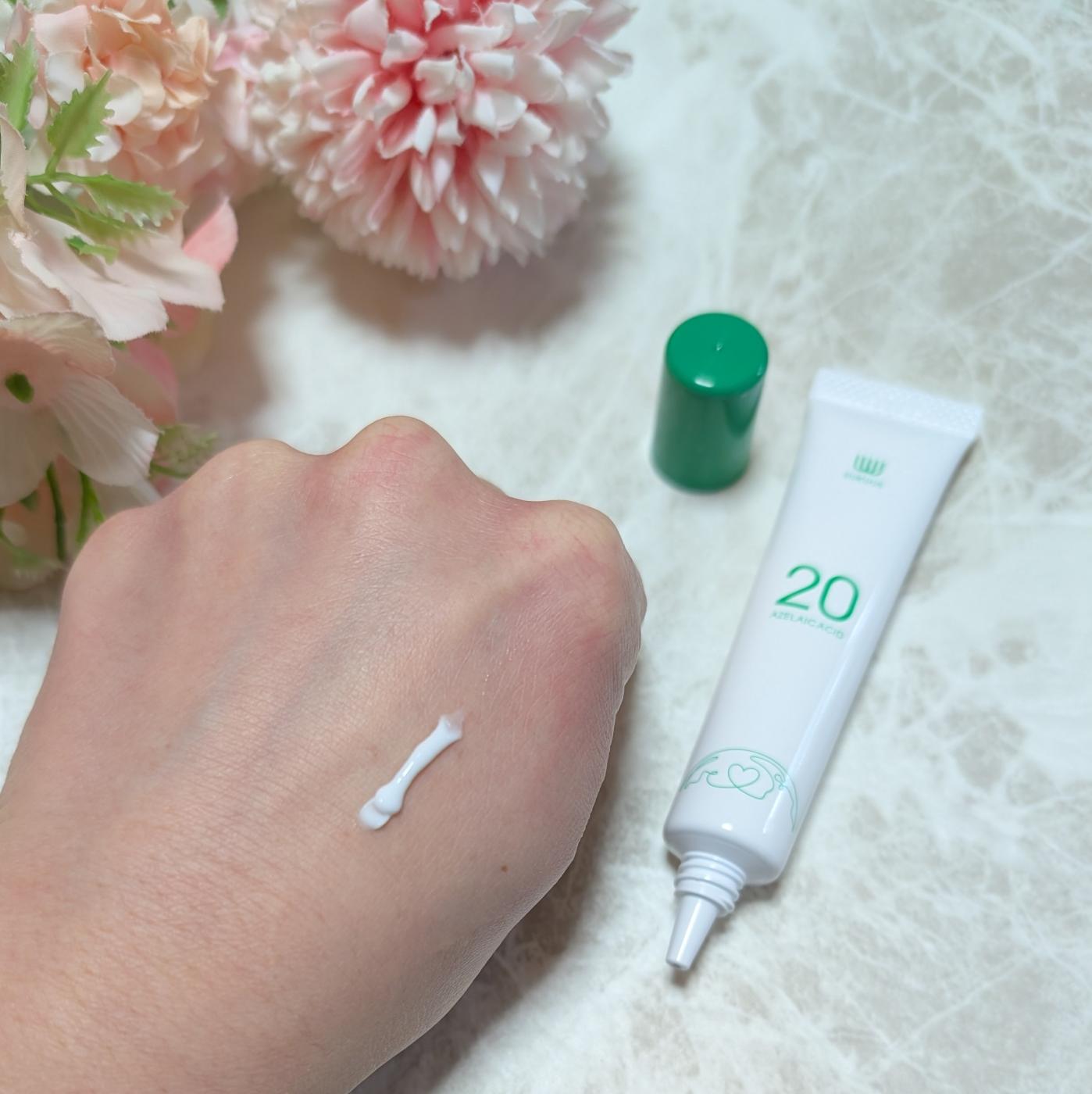 純アゼライン酸が20%も配合されていて、ナイアシンアミドやレチノール・ビタミン・ヒト型セラミド・バクチオール・CICA・アラントイン・グリチルリチン酸2K等有効成分もたっぷりで贅沢なクリームだなと思います。