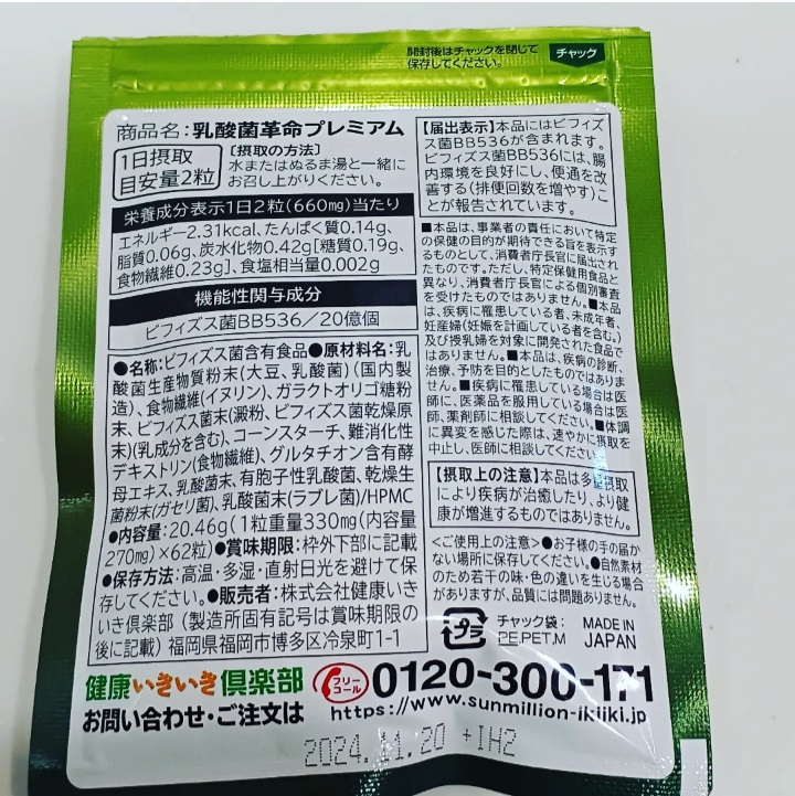 乳酸菌革命プレミアム お試しさせていただきました! 「腸内環境を良好にし便通を改善する」ことが認...