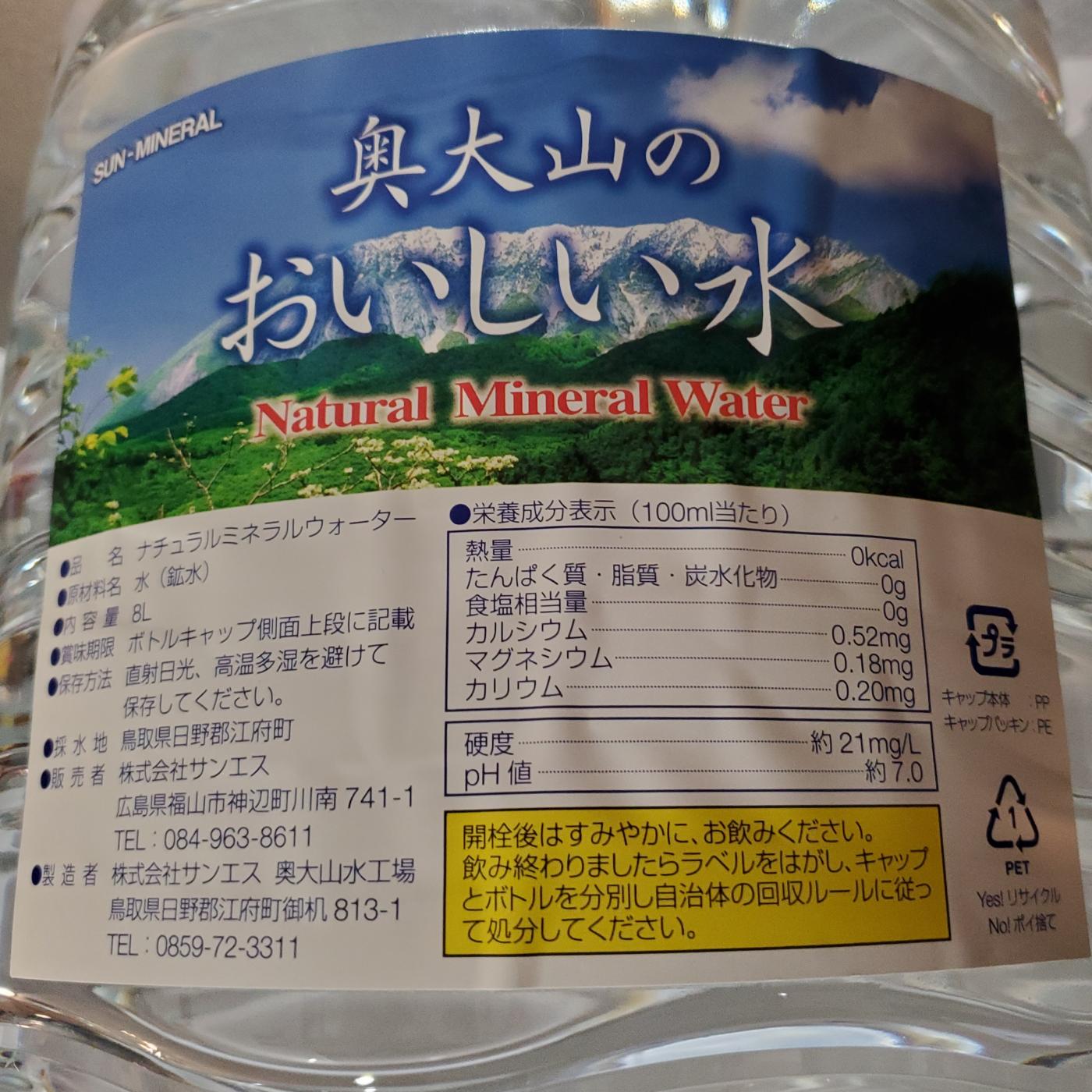 奥大山のおいしい天然水【1ケース(8ℓボトル3本入り)】
