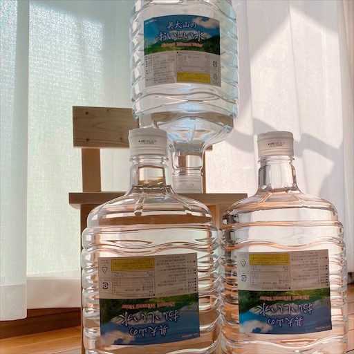 今回はたっぷり8ℓ3本の写真となっていますが500ml〜のサイズやウォーターサーバーもあるので使い勝手が良いと思います。