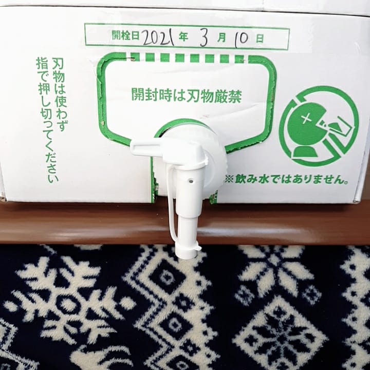 注ぎ口にコックのレバーがあるのでそれを左から右にすることで除菌水が出てきます。