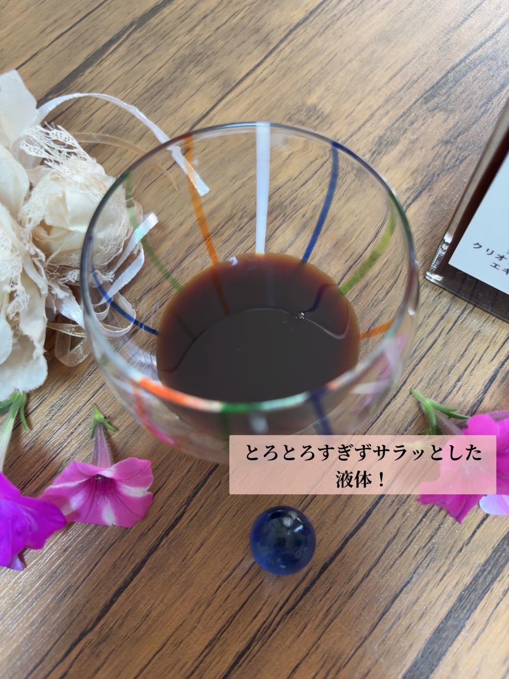 とろとろすぎずサラッとした液体で、そのまま舐めてみると、チョコレートのような甘さと、カカオの芳醇な香り・風味、そしてスッキリした後味で美味し〜ぃ🥹