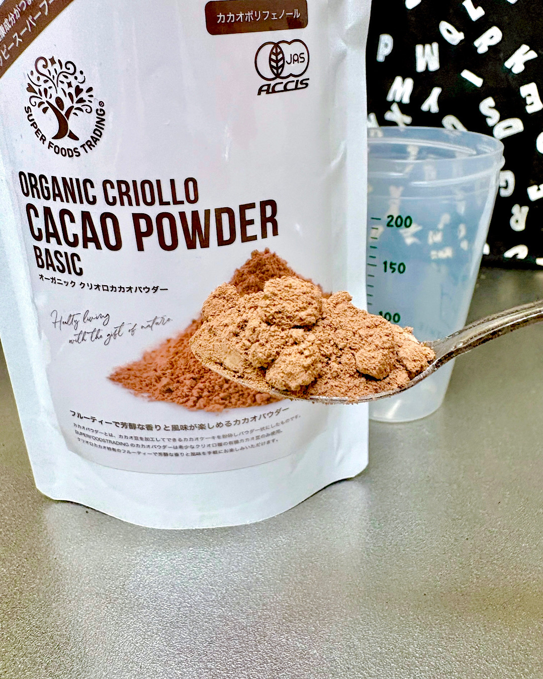 -コエタスのモニターキャンペーンでもらった【SUPER FOODS TRADING】さんの「オーガニッククリオロカカオパウダー」についてのレビューです-