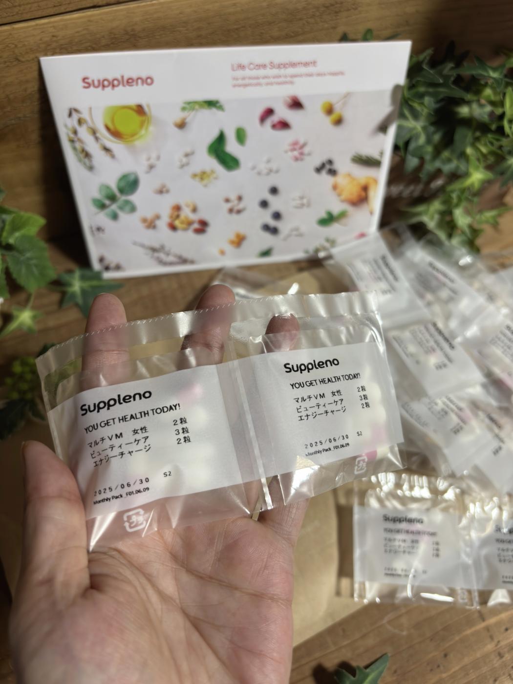Suppleno(サプリノ)で私だけのサプリメントパックを、ライフケア分析結果をもとに提案いただいた私にぴったりな私が本当に必要としているサプリメントを毎日摂り入れています。