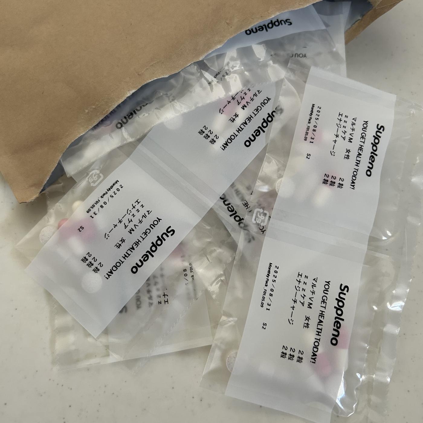 病院でお薬を処方してもらったかのようにビニールの個包装で一日分がセットされて届くのは新しい!!