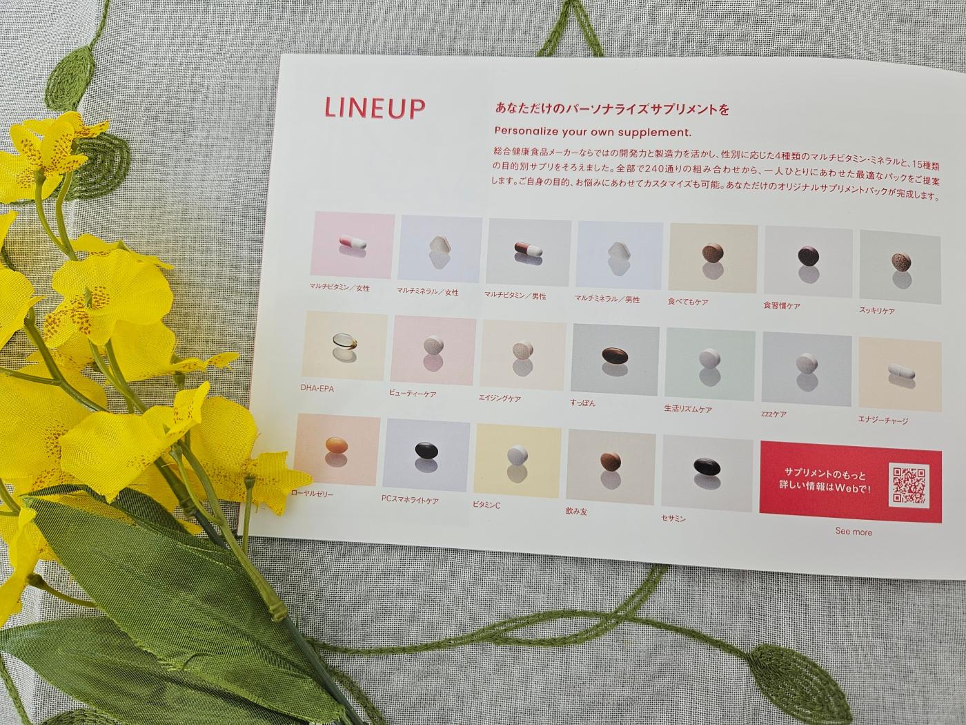 15種類の目的別サプリを選べるので、