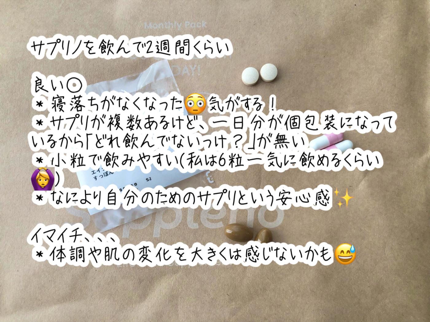 今回サプリノさんのサプリメントを初めて、試させて頂きました!注文の際に、自分の悩みや、生活習慣等を...