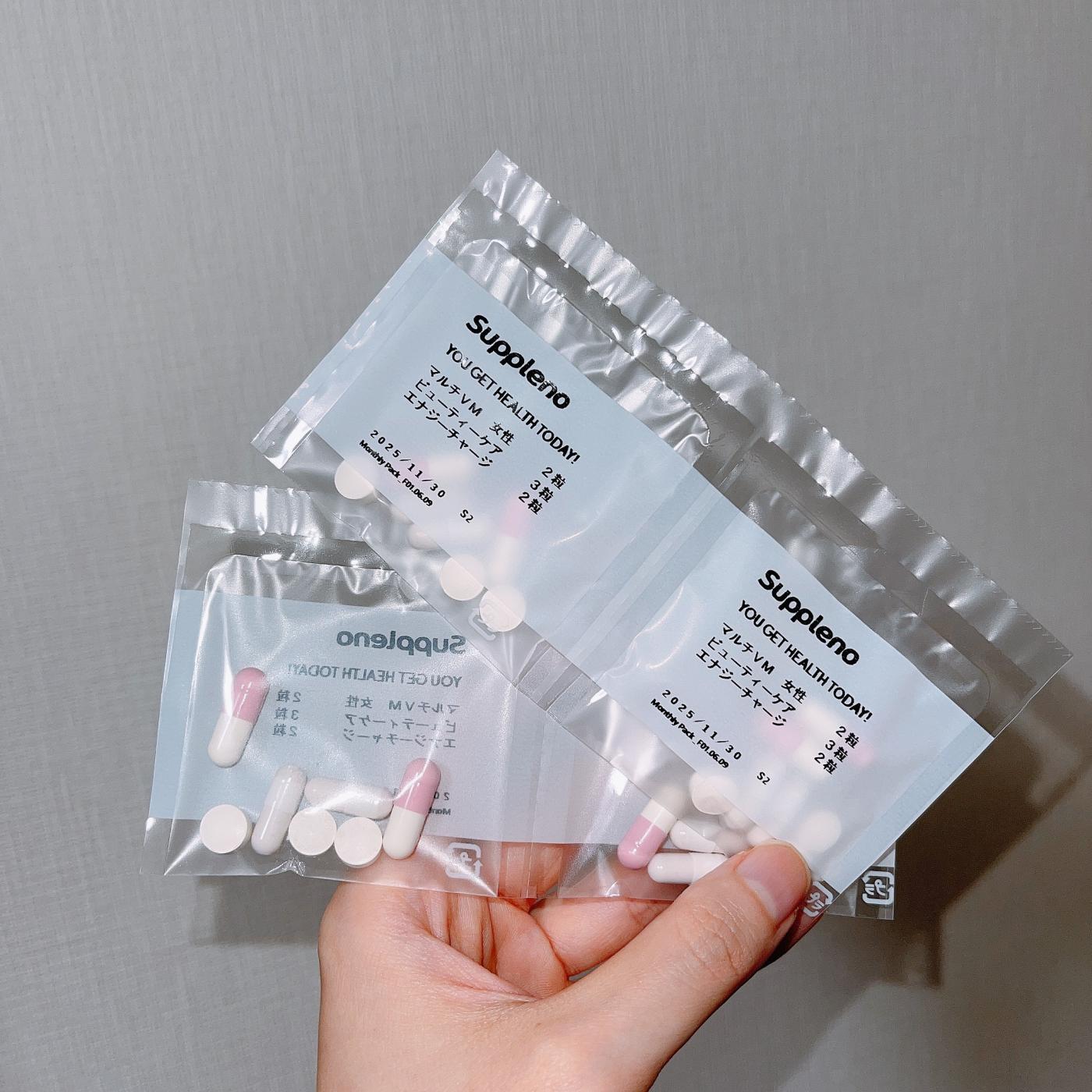 マルチビタミン、ビューティーケア、エナジーチャージの3種類のサプリメント。