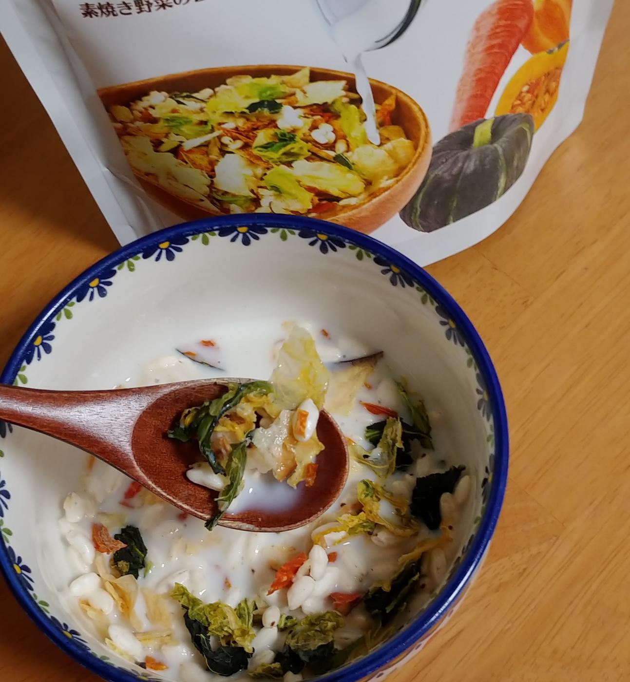 素焼き野菜と乾燥玄米、という初めて見る組み合わせのフレークです?