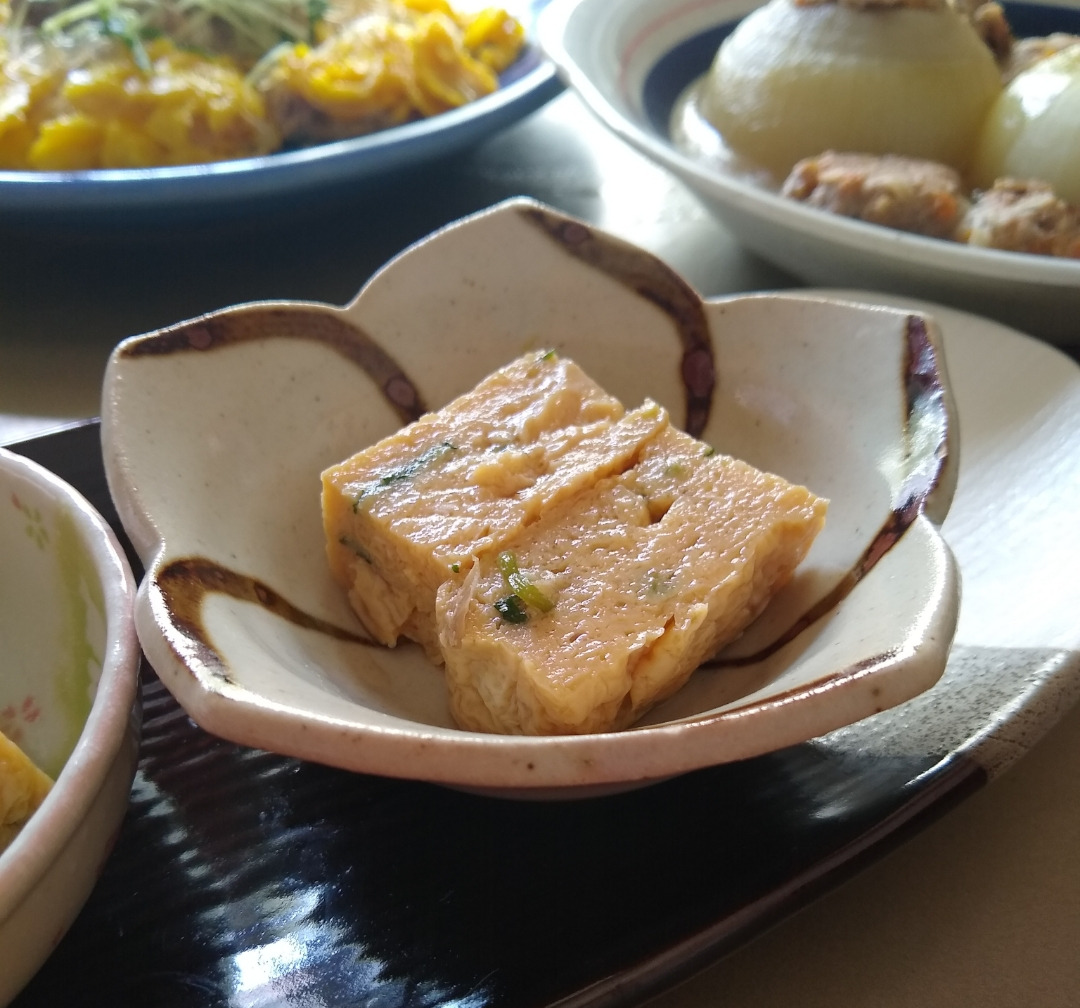自分では絶対こんなつゆだくな厚焼き玉子は作れないなぁ。