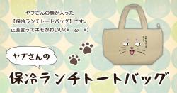 ニャンコのヤブさんのお顔が入ったトート【ヤブさんの保冷ランチトートバッグ】のご紹介です。
