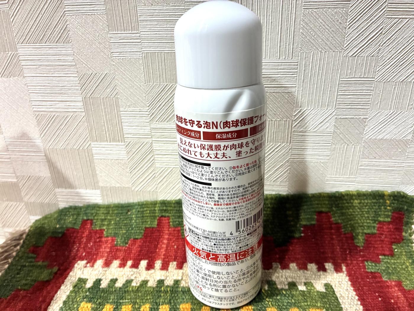 使い方はとても簡単で缶を振って泡を1プッシュ出して肉球に塗り込むだけ‼️