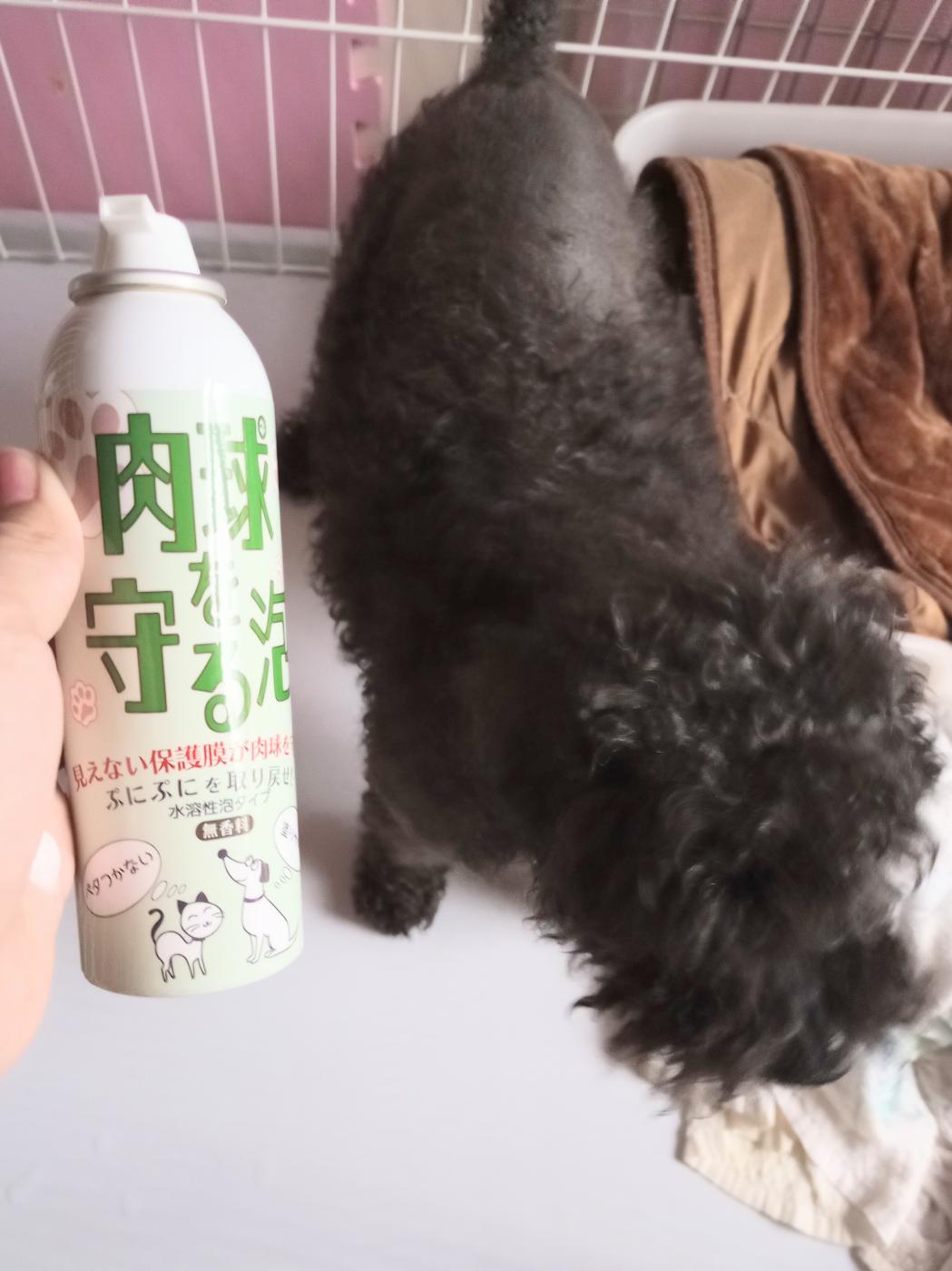 何か塗ってケアしてあげたくても、舐めてしまうので大丈夫かなとなかなかケア用品に手を出せずにいましたが、この泡はペットが舐めても大丈夫とのことで、安心して使用できました😆