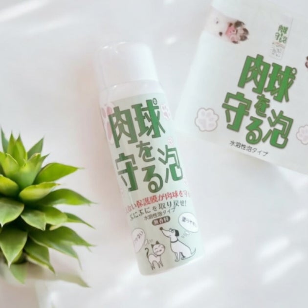 この「肉球を守る泡」は朝にケアをして、見えない健康な保護膜で肉球を守ってくれるという品物です。この時点で目からうろこな私。確かに肉球を保護するのであれば活動前にケアしてあげる必要がありますよね。