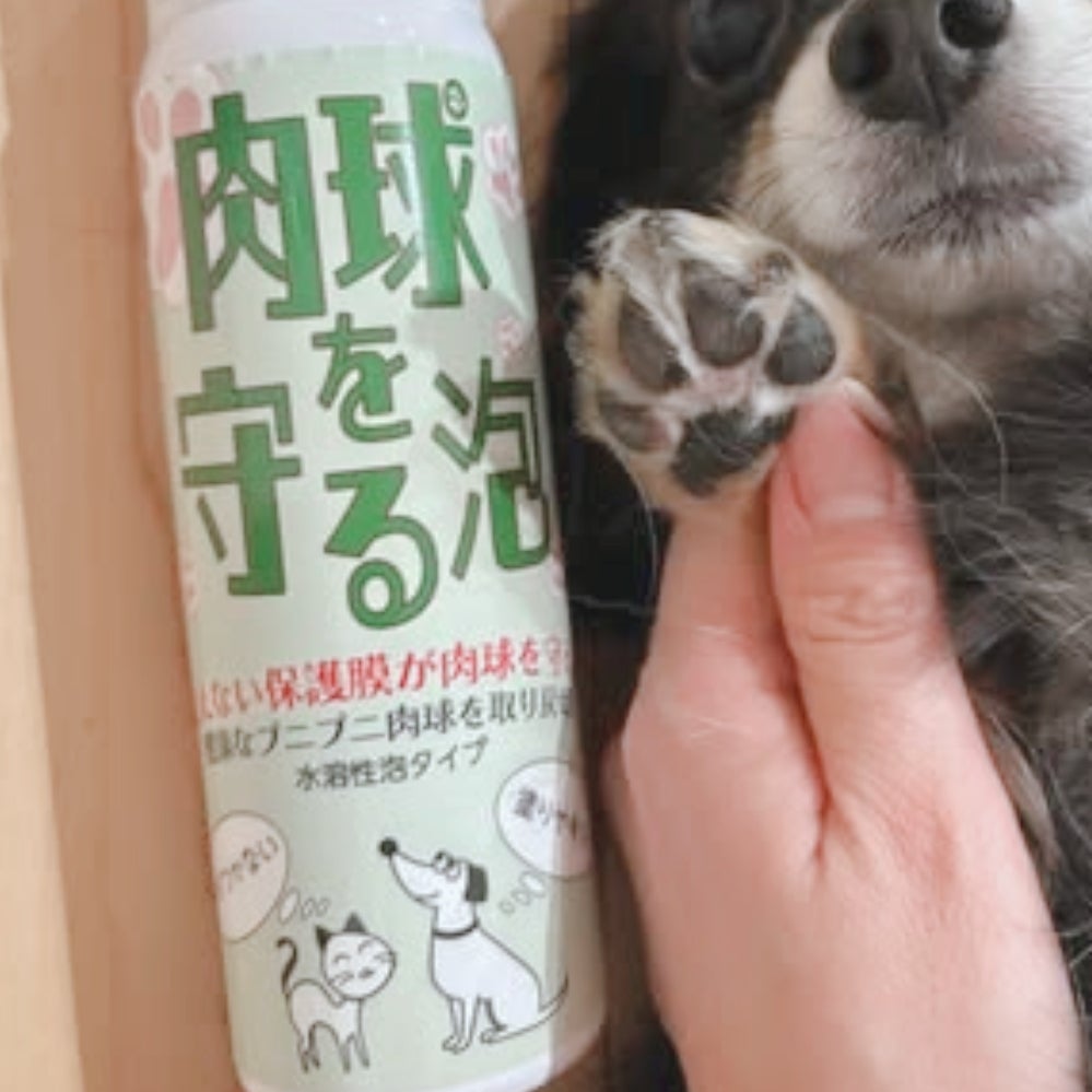 パパがお散歩のときに使った感想は、肉球を守る泡と言う商品名の通り、泡タイプです。が、想像した以上にもちふわの泡です。まるで人間用のシェービングフォームみたいです。とのこと。