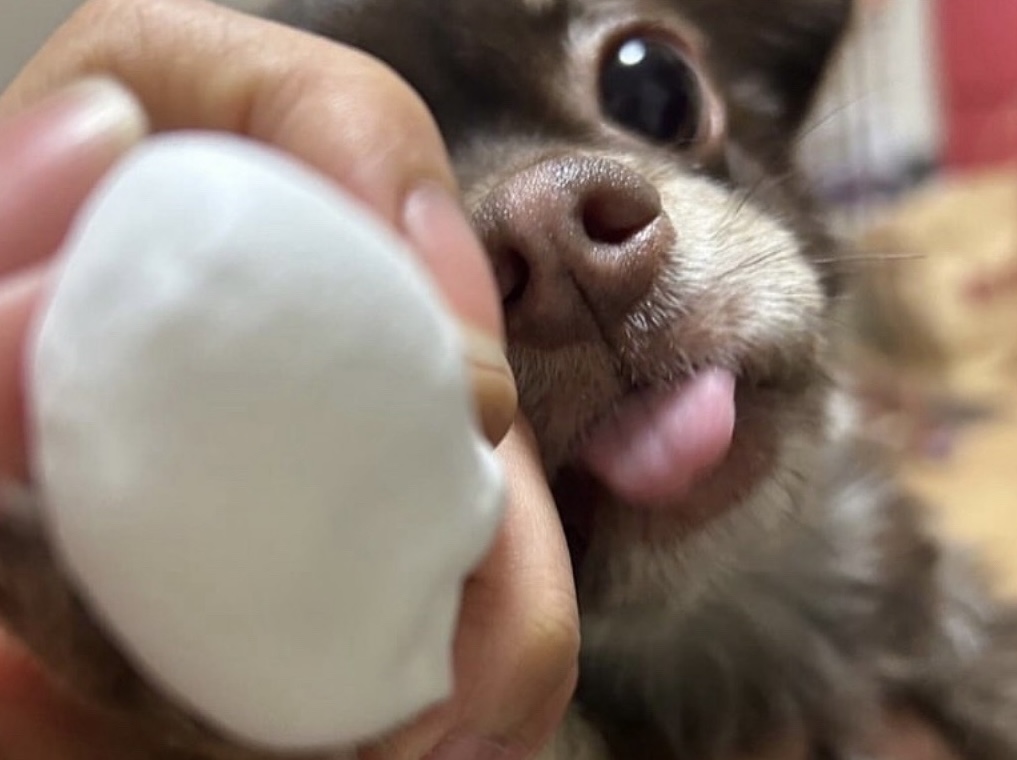 我が家の犬は、匂いをクンクン確認していました!最後まで嫌がらずに塗らせてくれたので、毎朝の日課になっています!!