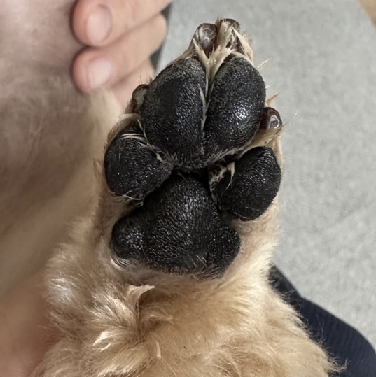 うちのコは8歳のシニア犬なので、日々の散歩や加齢により肉球がカサついてきていました。