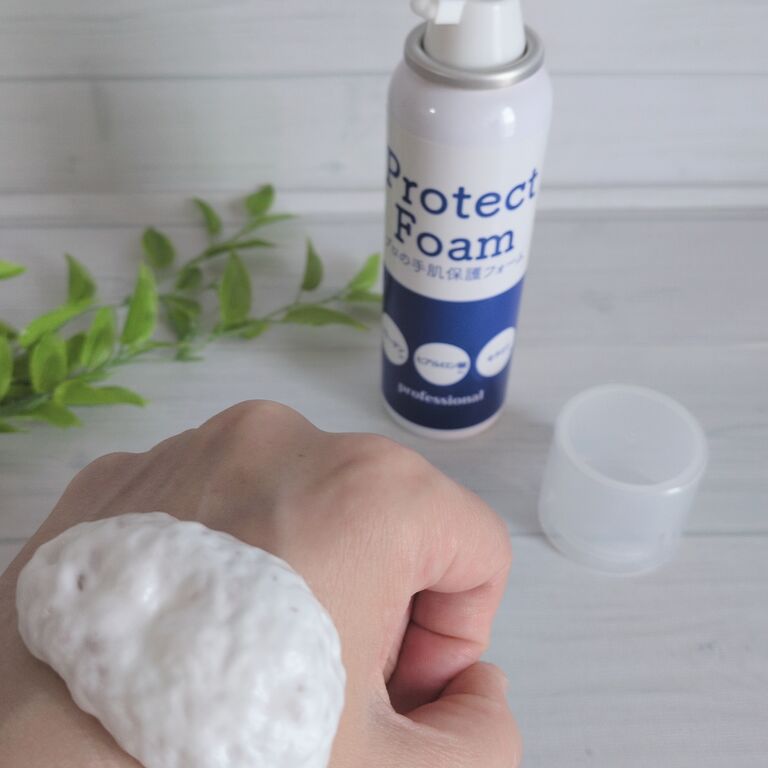 まるで⾒えない⼿袋をはめているみたい!うるおい保湿を与えるムース状の保護フォーム!