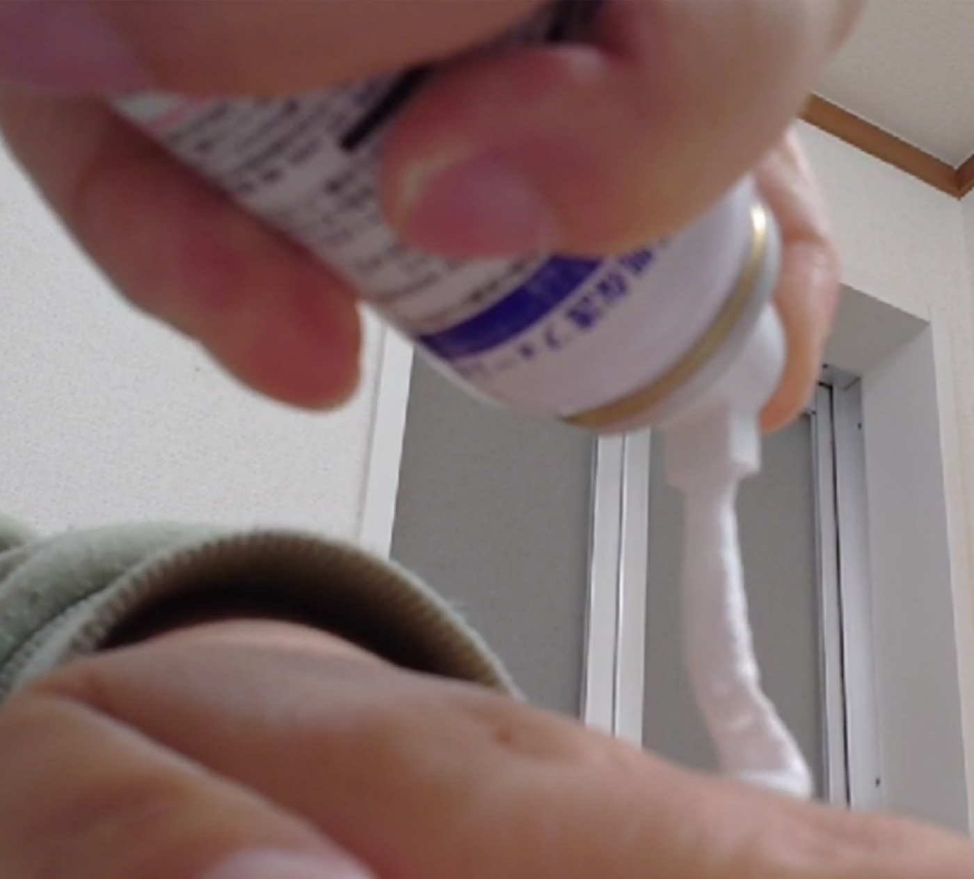 手を洗ってよく拭いてから、缶を振りピンポン球2個分を出してしっかり馴染ませて、乾燥してから作業に入るのですが、乾くまではしっとりしていて、乾いたらサラッとしています。