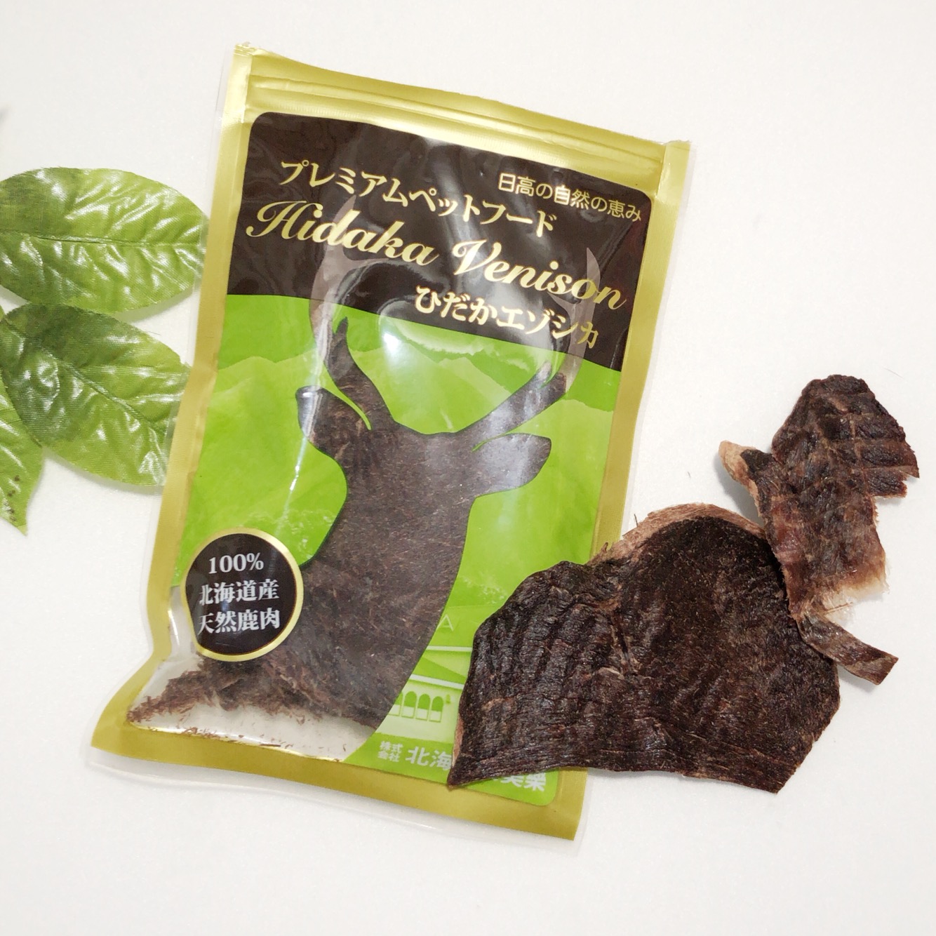 ペットがとっても喜ぶ 質の良いジャーキーを頂き 今回チワワにあげてみました♬ 天然エゾ鹿 モモ肉...
