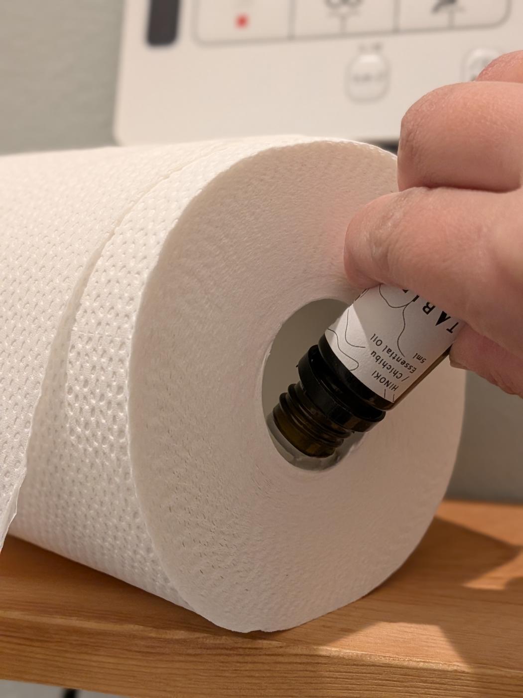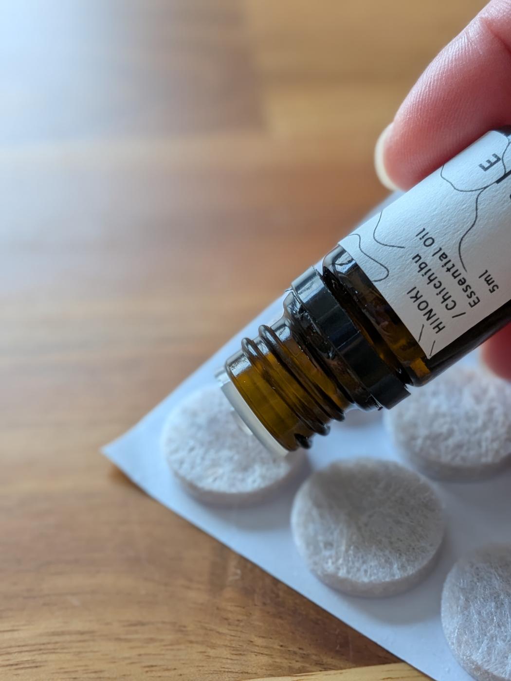 初心者の私でも手軽に楽しめるように、SNSで見たアイデアを参考に、100円ショップのフェルトやトイレットペーパーの芯など、身近なものにオイルを垂らして香りを楽しんでいます。不意にサラッと香りが届く瞬間があり、その度にふっと癒され、生活の小さなリフレッシュになっています。