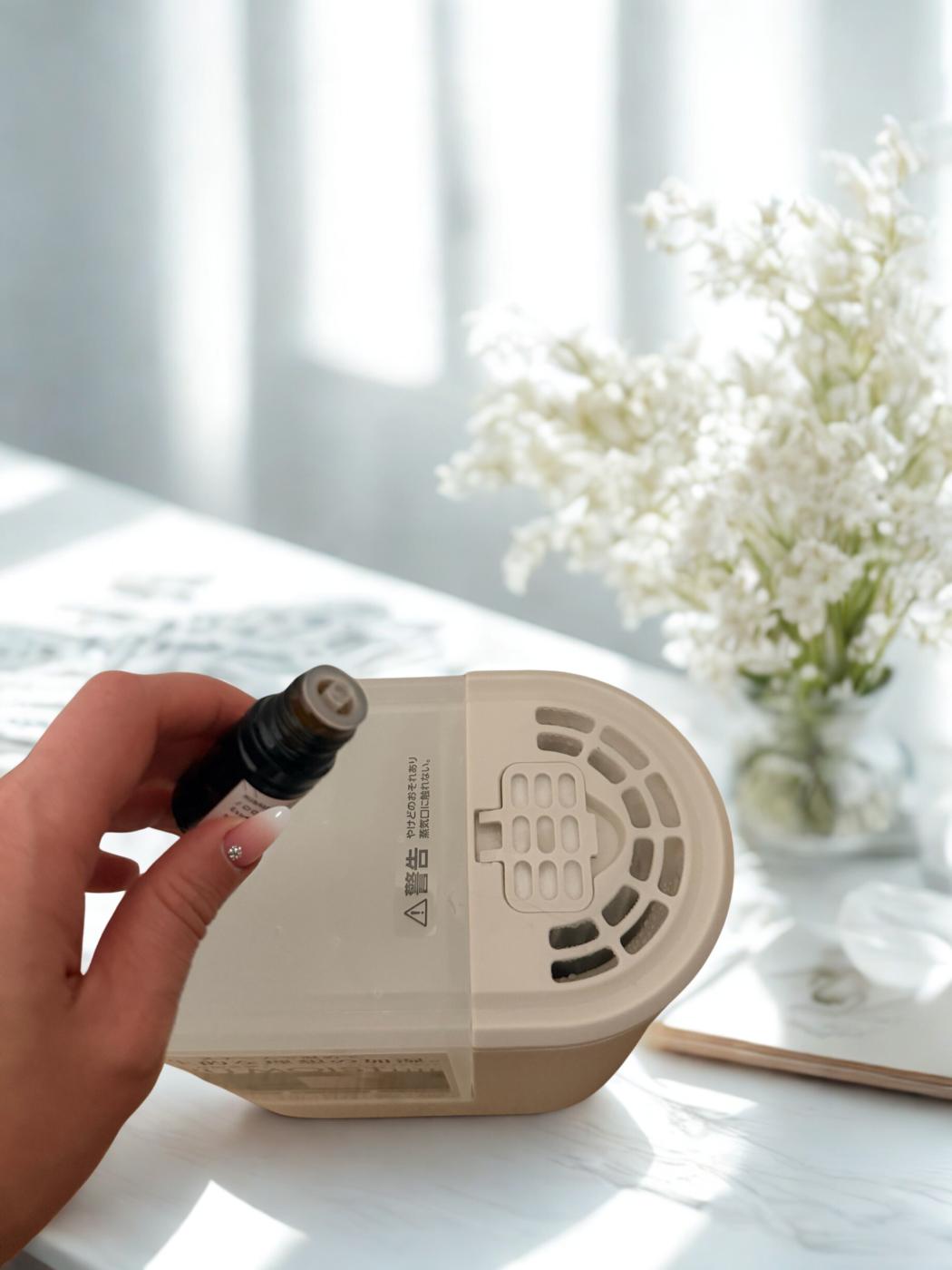 調べてみると加湿器で使えることを知り、手持ちの加湿器のオイル投入口に数滴垂らして使用してみました。