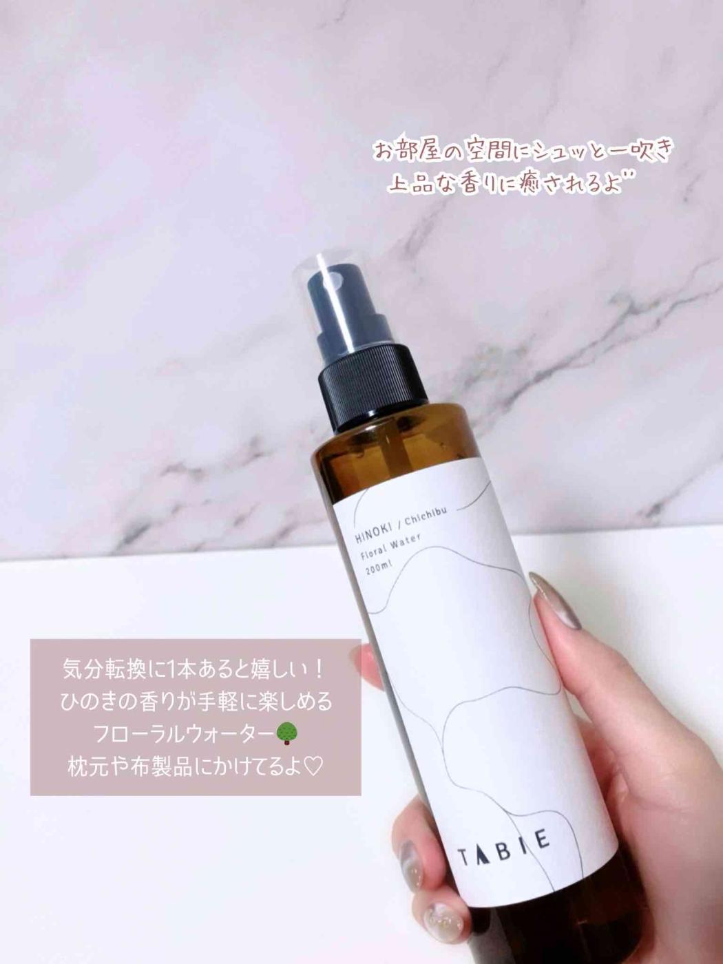 コエタスのモニターキャンペーンでもらった TABIEさんの『HINOKI 枝葉 / Chichibu - Floral Water』に...