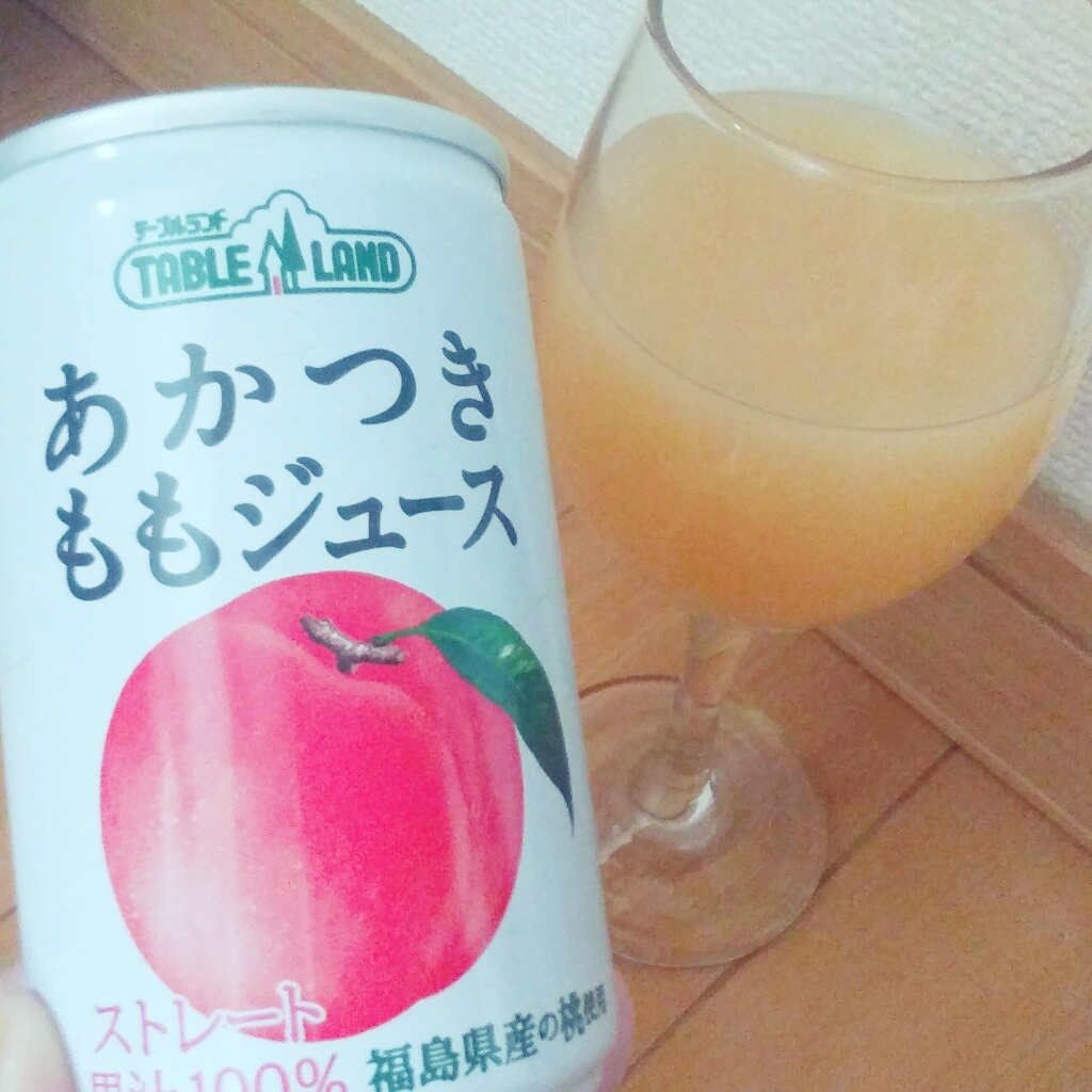 ?テープルランド様のあかつきのももジュース 飲んでみました? あかつきって福島県産のモモの品種...
