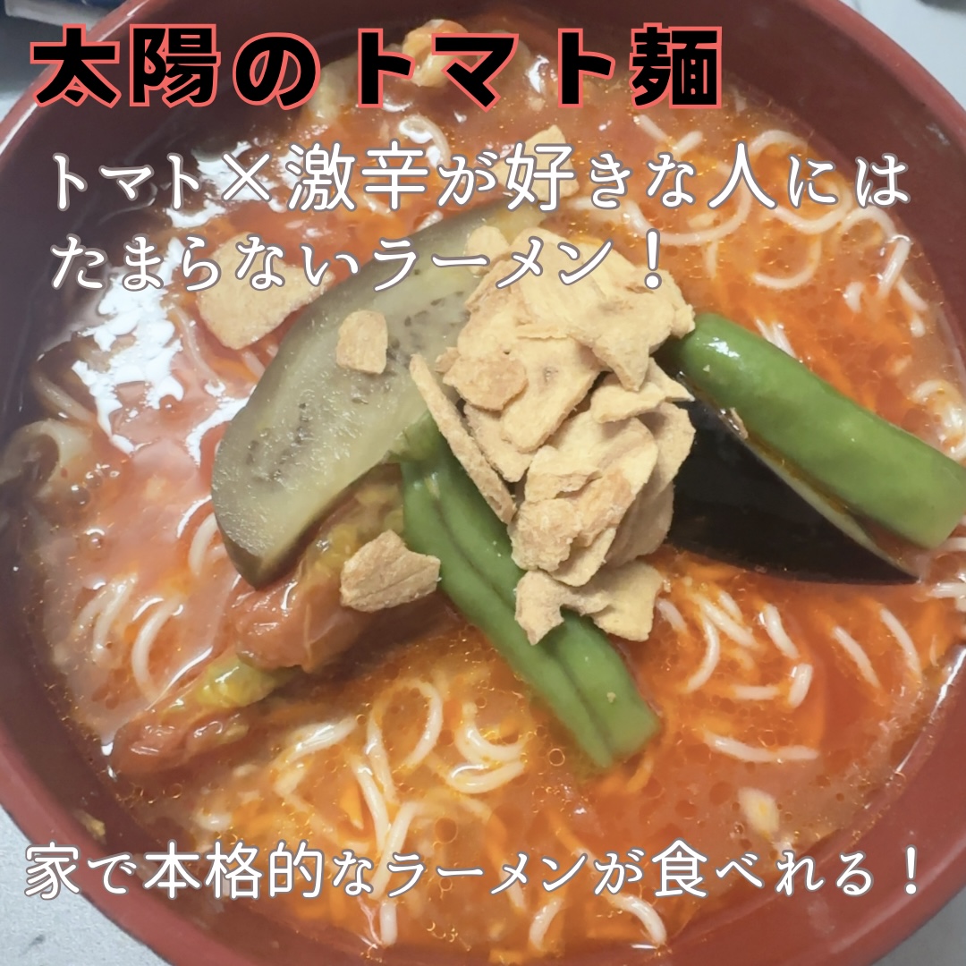 太陽の激辛トマト麺!  太陽の激辛! どんな感じかこれだけでもワクワクしますね。 トマト麺?パスタ?い...