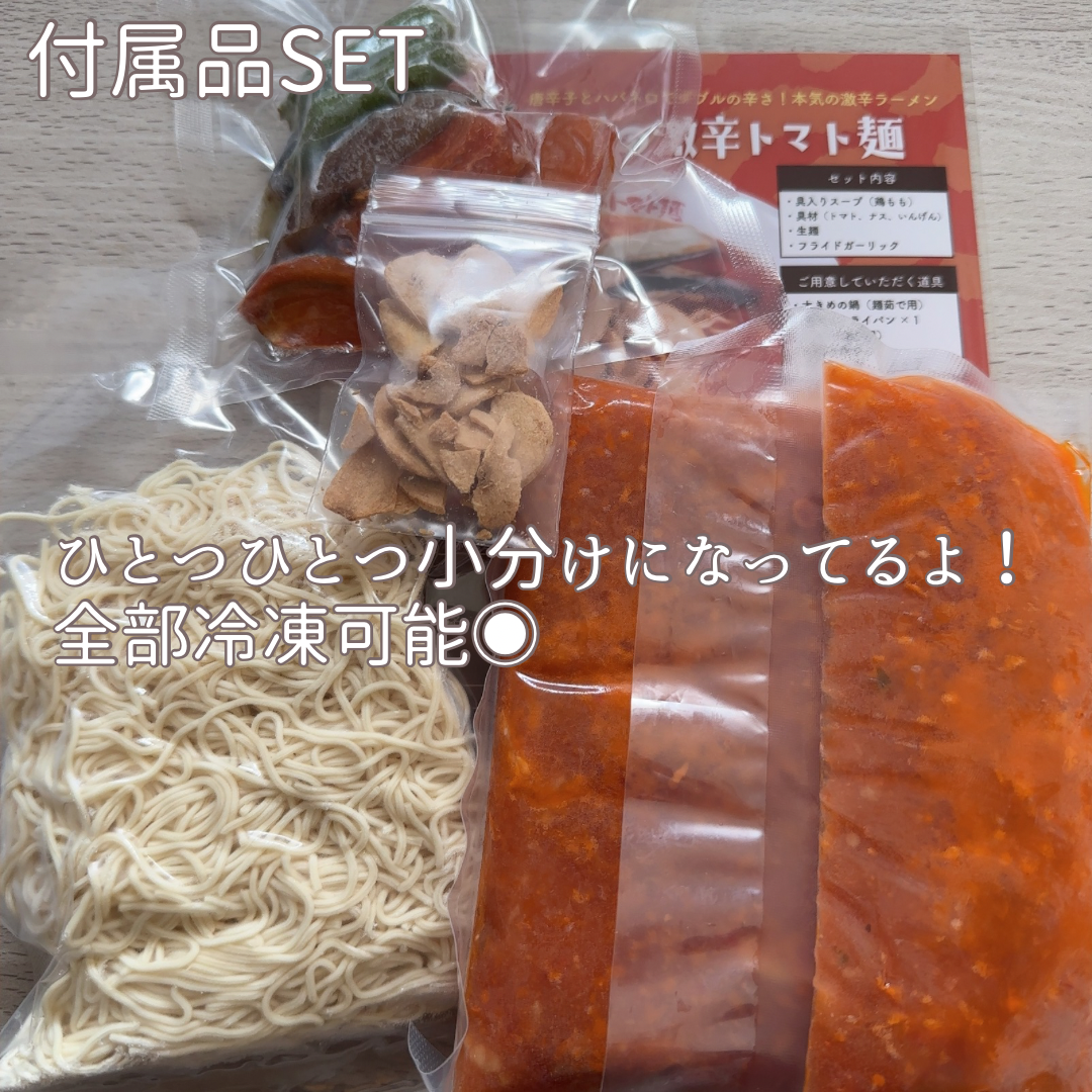 激辛が大好きなので、届くのを楽しみにしていたラーメンです。 冷凍で届いたセット。具材、麺、スープ...